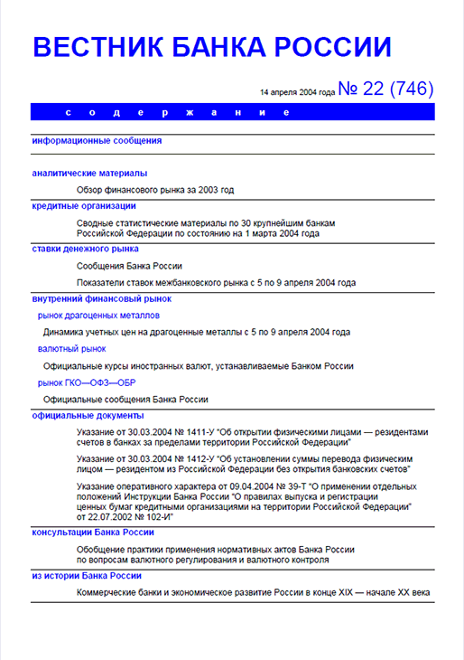 Вестник Банка России / Центральный банк Российской Федерации. — Москва : ПРАЙМ , 2004, N 22. — Москва : ПРАЙМ-ТАСС, 2004.