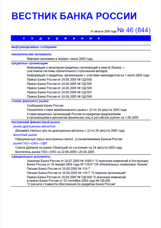 Вестник Банка России / Центральный банк Российской Федерации. — Москва : ПРАЙМ , 2005, N 46. — Москва : ПРАЙМ-ТАСС, 2005.