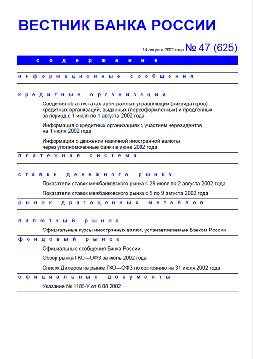 Вестник Банка России / Центральный банк Российской Федерации. — Москва : ПРАЙМ , 2002, N 47. — Москва : ПРАЙМ-ТАСС, 2002.