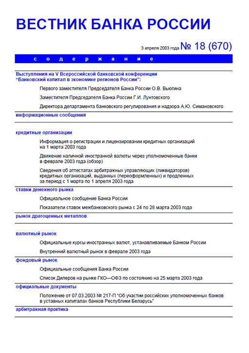 Вестник Банка России, 2003, N 18