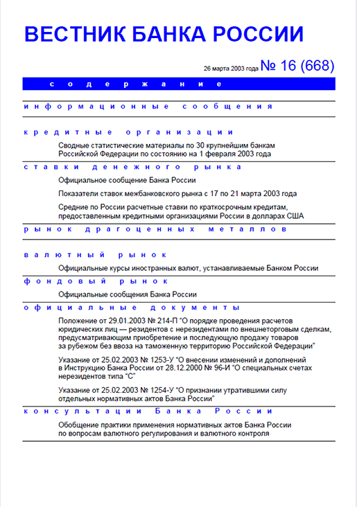 Вестник Банка России / Центральный банк Российской Федерации. — Москва : ПРАЙМ , 2003, N 16. — Москва : ПРАЙМ-ТАСС, 2003.