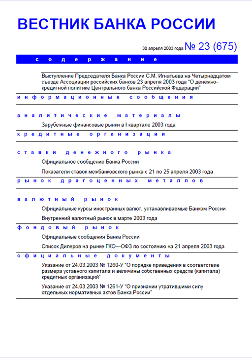 Вестник Банка России, 2003, N 23