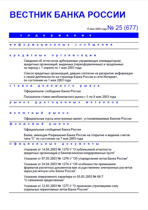 Вестник Банка России, 2003, N 25