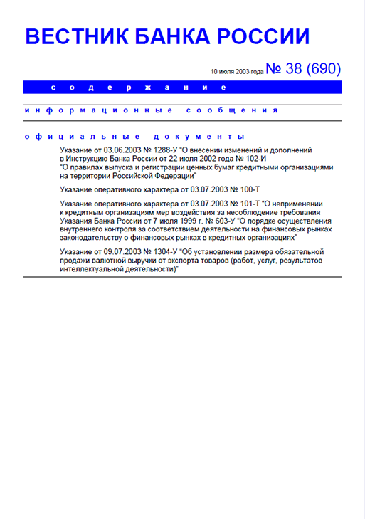 Вестник Банка России / Центральный банк Российской Федерации. — Москва : ПРАЙМ , 2003, N 38. — Москва : ПРАЙМ-ТАСС, 2003.