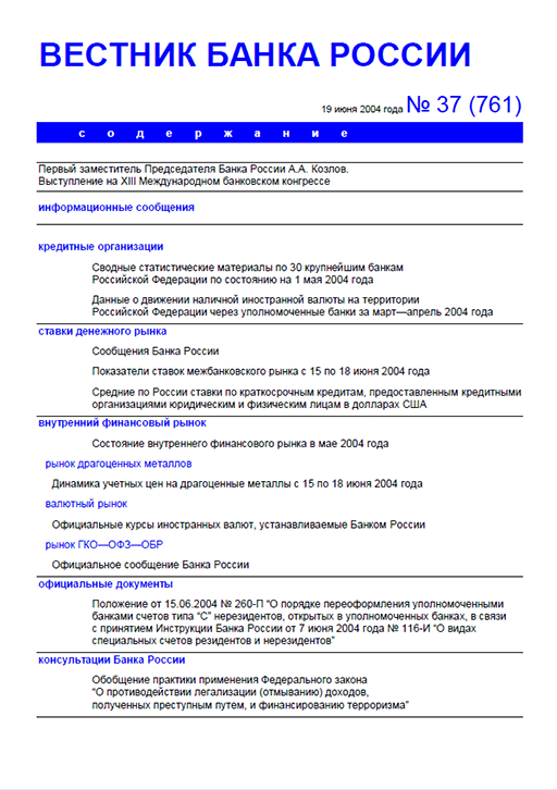 Вестник Банка России, 2004, N 37
