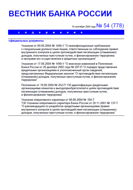 Вестник Банка России / Центральный банк Российской Федерации. — Москва : ПРАЙМ , 2004, N 54. — Москва : ПРАЙМ-ТАСС, 2004.