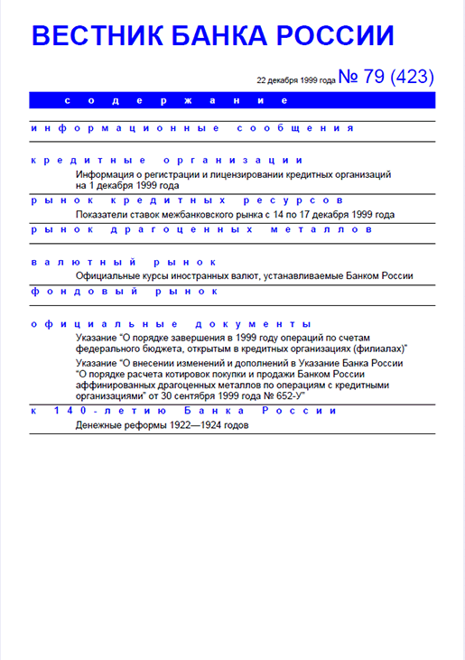 Вестник Банка России, 1999, N 79