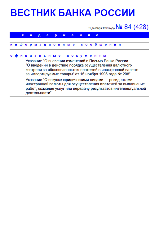 Вестник Банка России / Центральный банк Российской Федерации. — Москва : ПРАЙМ , 1999, N 84. — Москва : ИТАР-ТАСС, 1999.