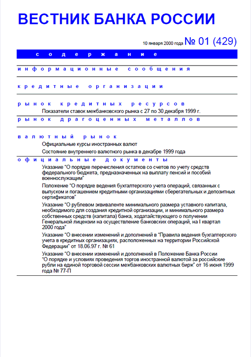 Вестник Банка России / Центральный банк Российской Федерации. — Москва : ПРАЙМ , 2000, N 1. — Москва : ИТАР-ТАСС, 2000.