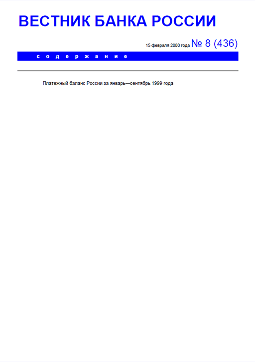 Вестник Банка России / Центральный банк Российской Федерации. — Москва : ПРАЙМ , 2000, N 8. — Москва : ИТАР-ТАСС, 2000.