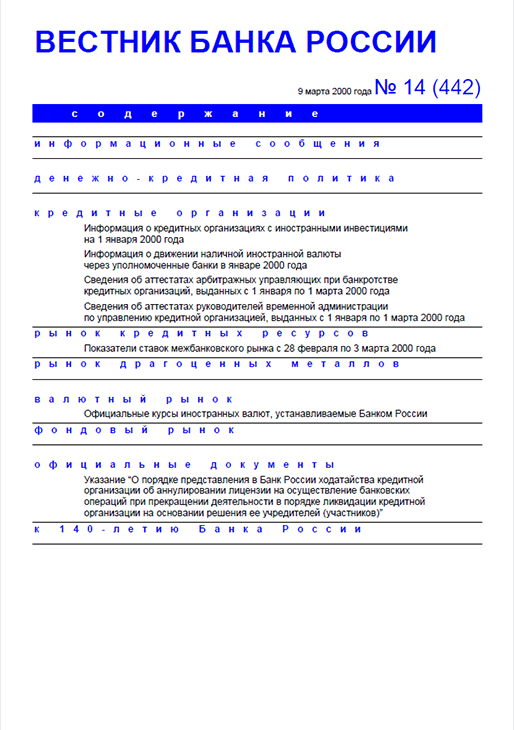 Вестник Банка России / Центральный банк Российской Федерации. — Москва : ПРАЙМ , 2000, N 14. — Москва : ИТАР-ТАСС, 2000.