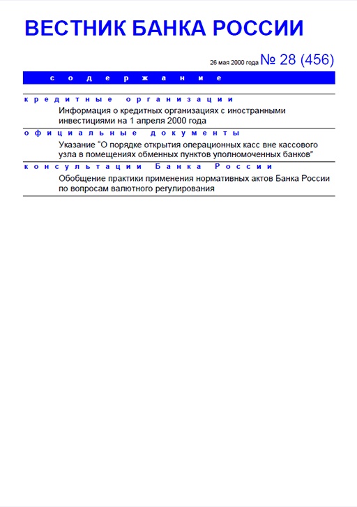 Вестник Банка России / Центральный банк Российской Федерации. — Москва : ПРАЙМ , 2000, N 28. — Москва : ИТАР-ТАСС, 2000.