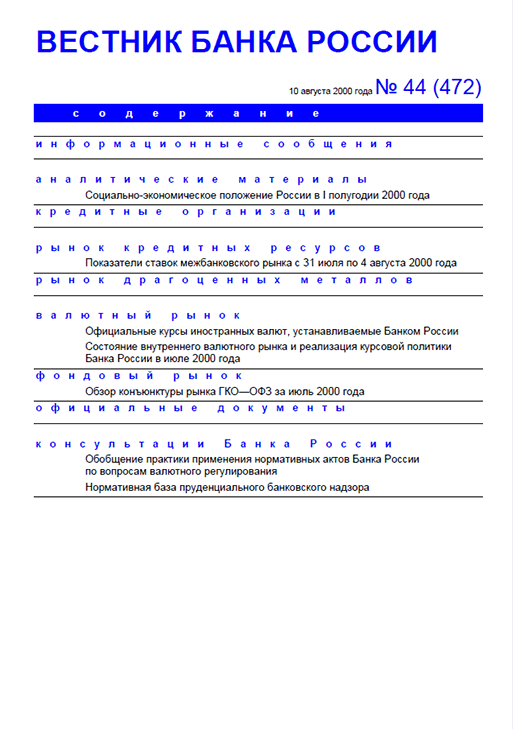 Вестник Банка России / Центральный банк Российской Федерации. — Москва : ПРАЙМ , 2000, N 44. — Москва : ИТАР-ТАСС, 2000.