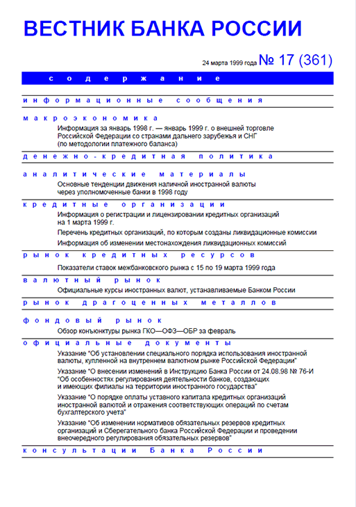 Вестник Банка России, 1999, N 17