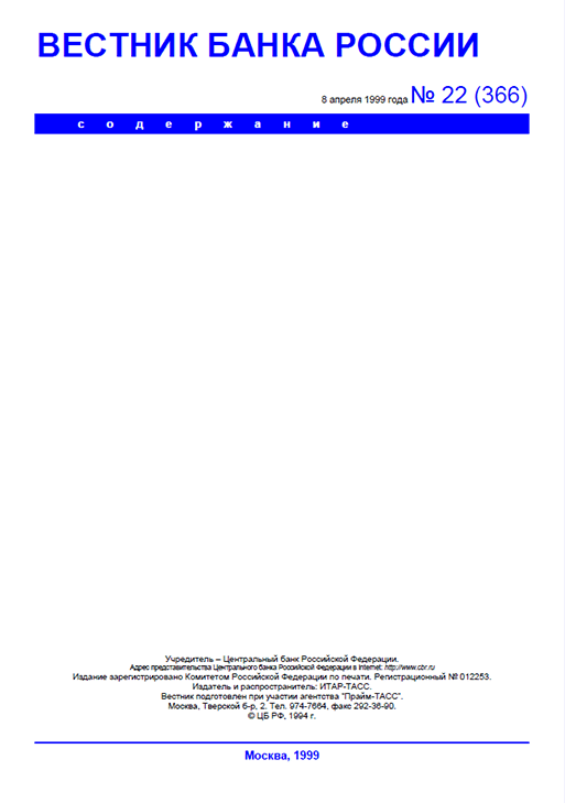 Вестник Банка России / Центральный банк Российской Федерации. — Москва : ПРАЙМ , 1999, N 22. — 1999.