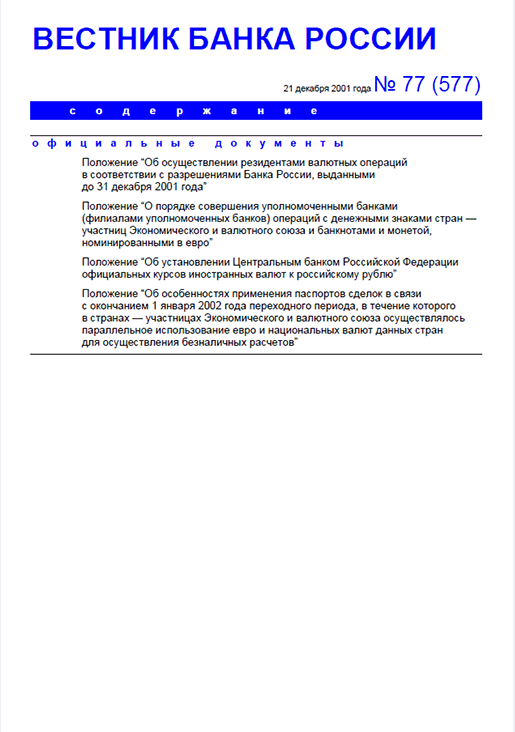 Вестник Банка России / Центральный банк Российской Федерации. — Москва : ПРАЙМ , 2001, N 77. — Москва : ПРАЙМ-ТАСС, 2001.