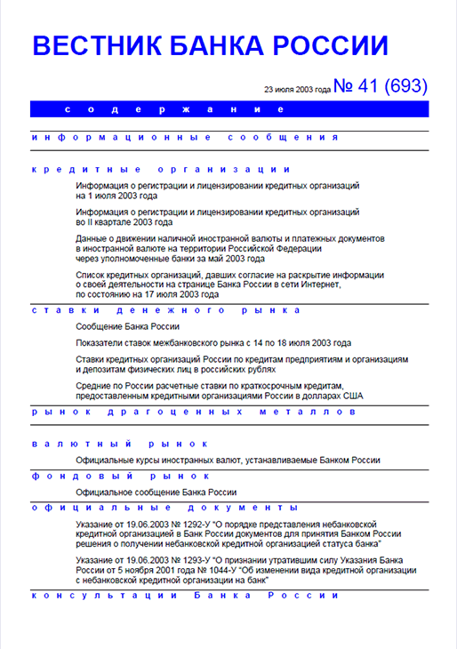 Вестник Банка России, 2003, N 41