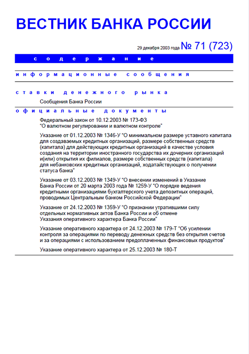 Вестник Банка России / Центральный банк Российской Федерации. — Москва : ПРАЙМ , 2003, N 71. — Москва : ПРАЙМ-ТАСС, 2003.