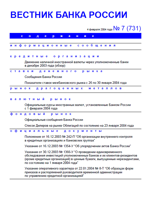 Вестник Банка России / Центральный банк Российской Федерации. — Москва : ПРАЙМ , 2004, N 7. — Москва : ПРАЙМ-ТАСС, 2004.