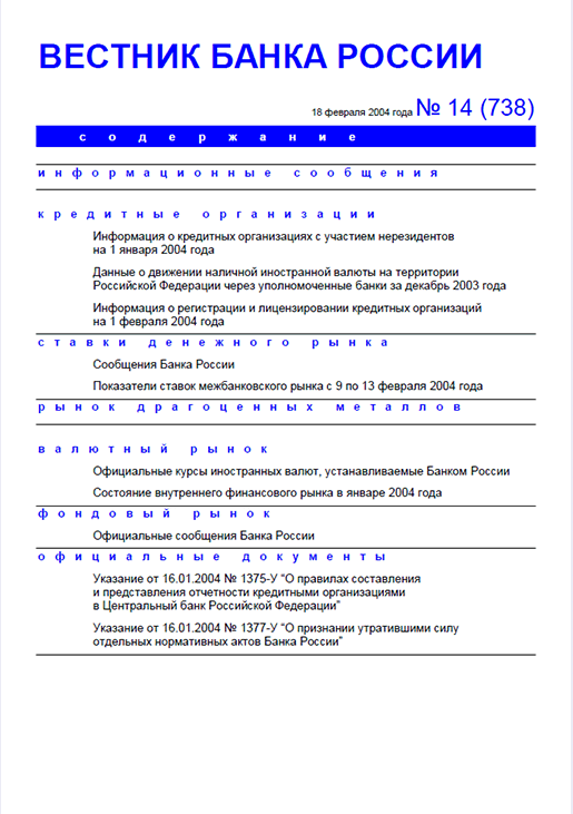 Вестник Банка России / Центральный банк Российской Федерации. — Москва : ПРАЙМ , 2004, N 14. — Москва : ПРАЙМ-ТАСС, 2004.