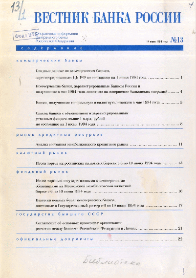 Вестник Банка России, 1994, N 13