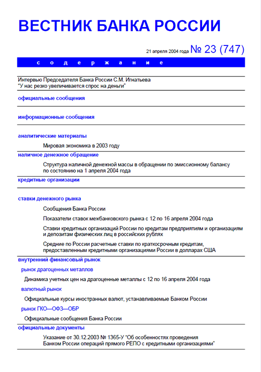 Вестник Банка России / Центральный банк Российской Федерации. — Москва : ПРАЙМ , 2004, N 23. — Москва : ПРАЙМ-ТАСС, 2004.