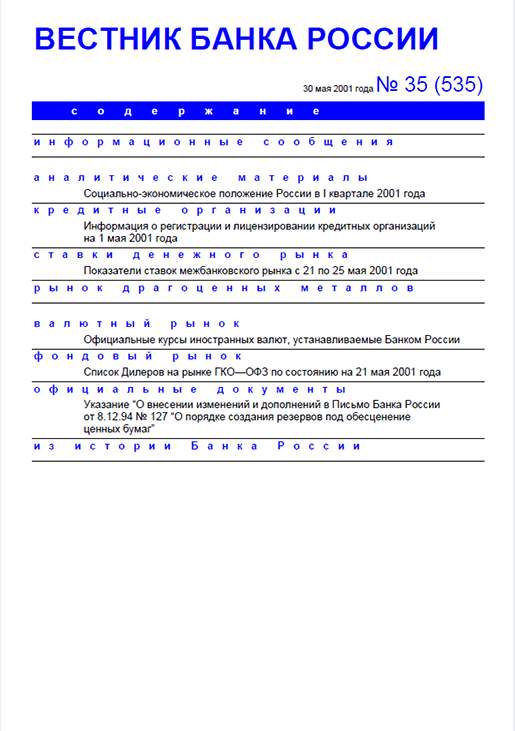 Вестник Банка России, 2001, N 35