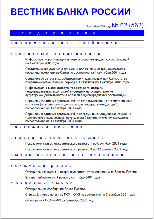 Вестник Банка России, 2001, N 62