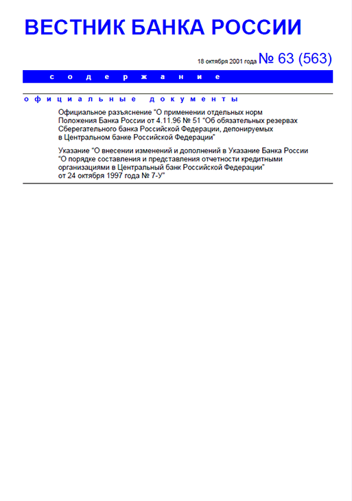 Вестник Банка России / Центральный банк Российской Федерации. — Москва : ПРАЙМ , 2001, N 63. — Москва : ПРАЙМ-ТАСС, 2001.