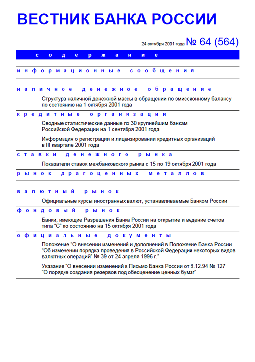 Вестник Банка России, 2001, N 64