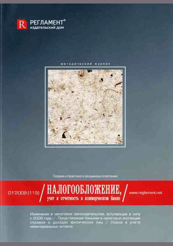 Налогообложение, учет и отчетность в коммерческом банке. — Москва : Регламент , 2009, N 1. — 2009.