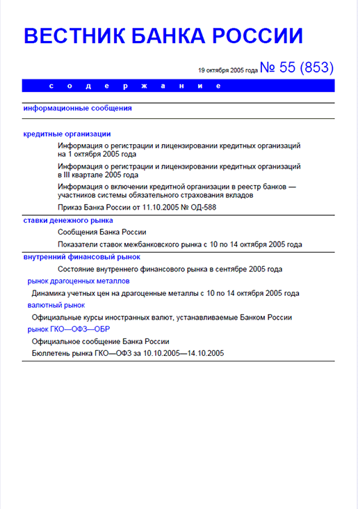 Вестник Банка России / Центральный банк Российской Федерации. — Москва : ПРАЙМ , 2005, N 55. — Москва : ПРАЙМ-ТАСС, 2005.
