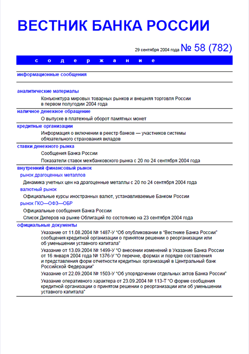 Вестник Банка России / Центральный банк Российской Федерации. — Москва : ПРАЙМ , 2004, N 58. — Москва : ПРАЙМ-ТАСС, 2004.