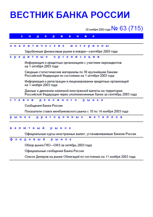 Вестник Банка России, 2003, N 63