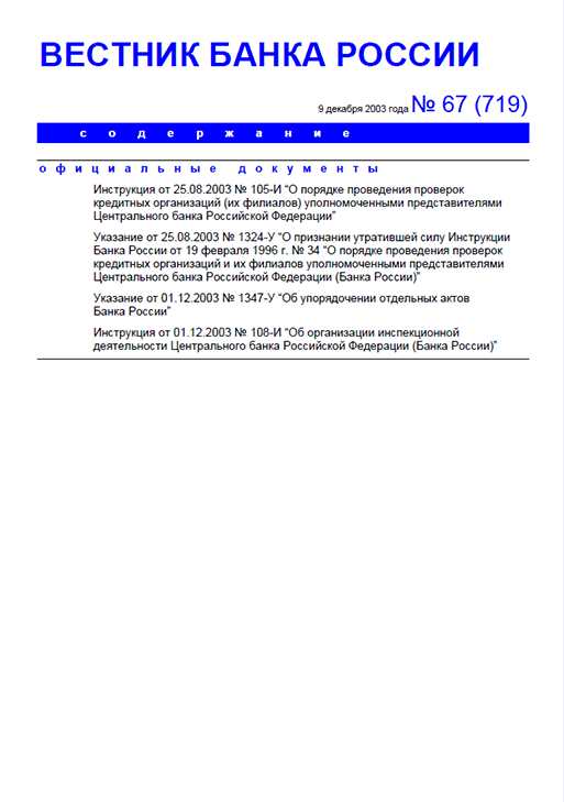 Вестник Банка России / Центральный банк Российской Федерации. — Москва : ПРАЙМ , 2003, N 67. — Москва : ПРАЙМ-ТАСС, 2003.