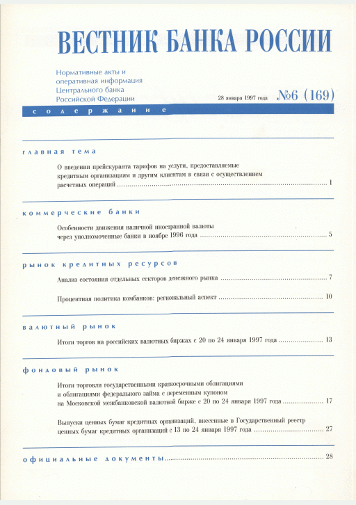 Вестник Банка России / Центральный банк Российской Федерации. — Москва : ПРАЙМ , 1997, N 6. — 1997.