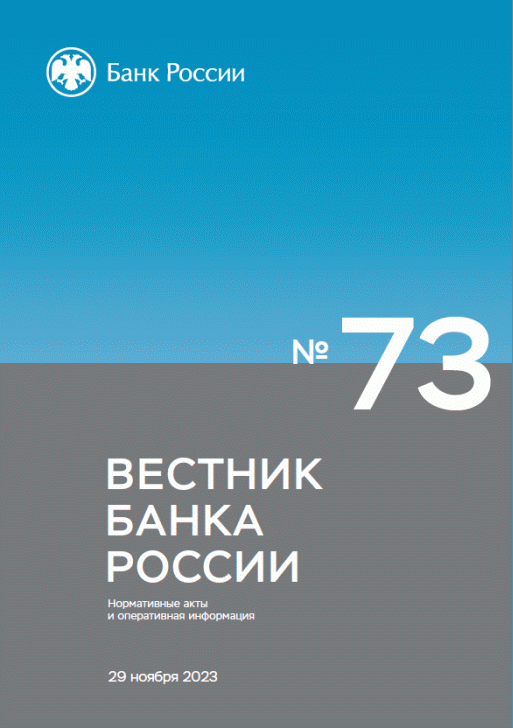 Вестник Банка России / Центральный банк Российской Федерации. — Москва : ПРАЙМ , 2023, N 73. — 2023.