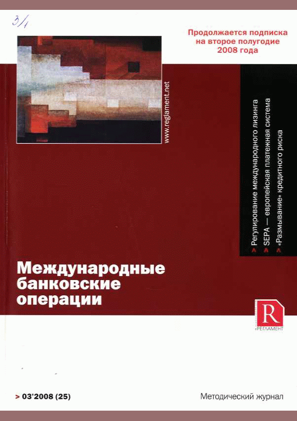 Международные банковские операции. — Москва : Регламент-Медиа , 2008, N 3. — 2008.