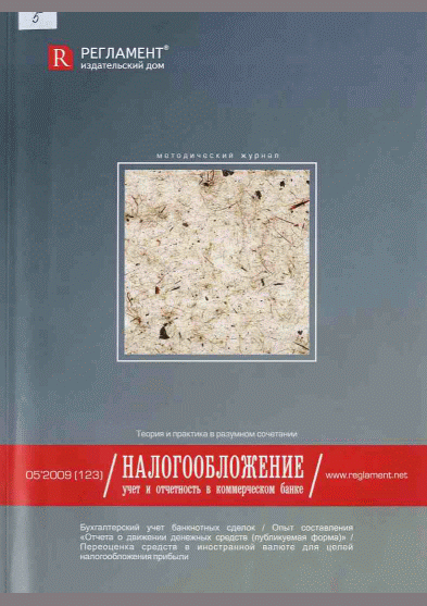 Налогообложение, учет и отчетность в коммерческом банке. — Москва : Регламент , 2009, N 5. — 2009.
