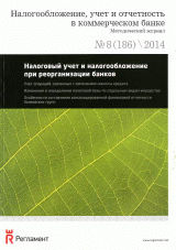 Налогообложение, учет и отчетность в коммерческом банке. — Москва : Регламент , 2014, N 8. — 2014.