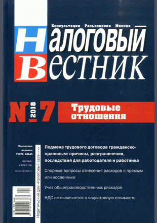 Налоговый вестник. — Москва : Налоговый вестник , 2018, N 7. — 2018.