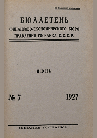 Бюллетень финансово-экономического бюро Правления Госбанка СССР. — Москва : Госбанк , 1927, N 7. — 1927.