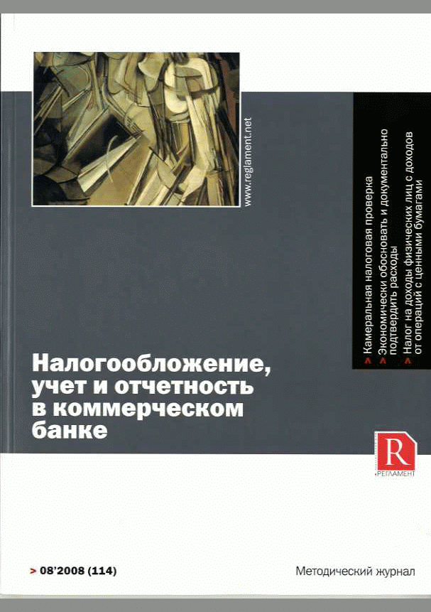 Налогообложение, учет и отчетность в коммерческом банке. — Москва : Регламент , 2008, N 8. — 2008.