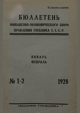 Бюллетень финансово-экономического бюро Правления Госбанка СССР. — Москва : Госбанк , 1928, N 1/2. — 1928.