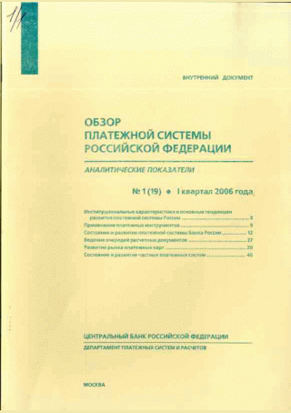 Обзор платежной системы Российской Федерации : аналитические показатели / Центральный банк Российской Федерации, Департамент национальной платежной системы. — Москва : Банк России , 2006, N 1. — 2006.