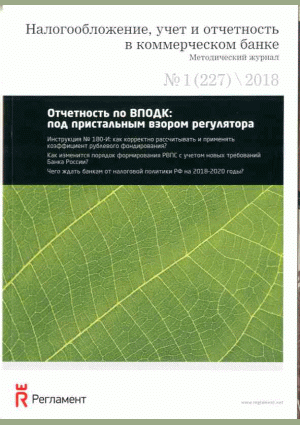 Налогообложение, учет и отчетность в коммерческом банке. — Москва : Регламент , 2018, N 1. — 2018.