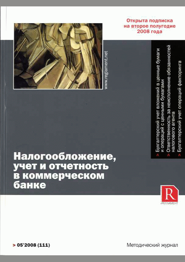 Налогообложение, учет и отчетность в коммерческом банке. — Москва : Регламент , 2008, N 5. — 2008.