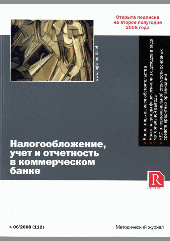 Налогообложение, учет и отчетность в коммерческом банке. — Москва : Регламент , 2008, N 6. — 2008.