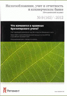 Налогообложение, учет и отчетность в коммерческом банке. — Москва : Регламент , 2012, N 9. — 2012.