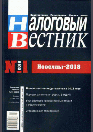 Налоговый вестник. — Москва : Налоговый вестник , 2018, N 1. — 2018.